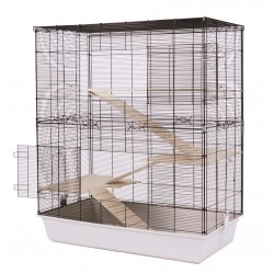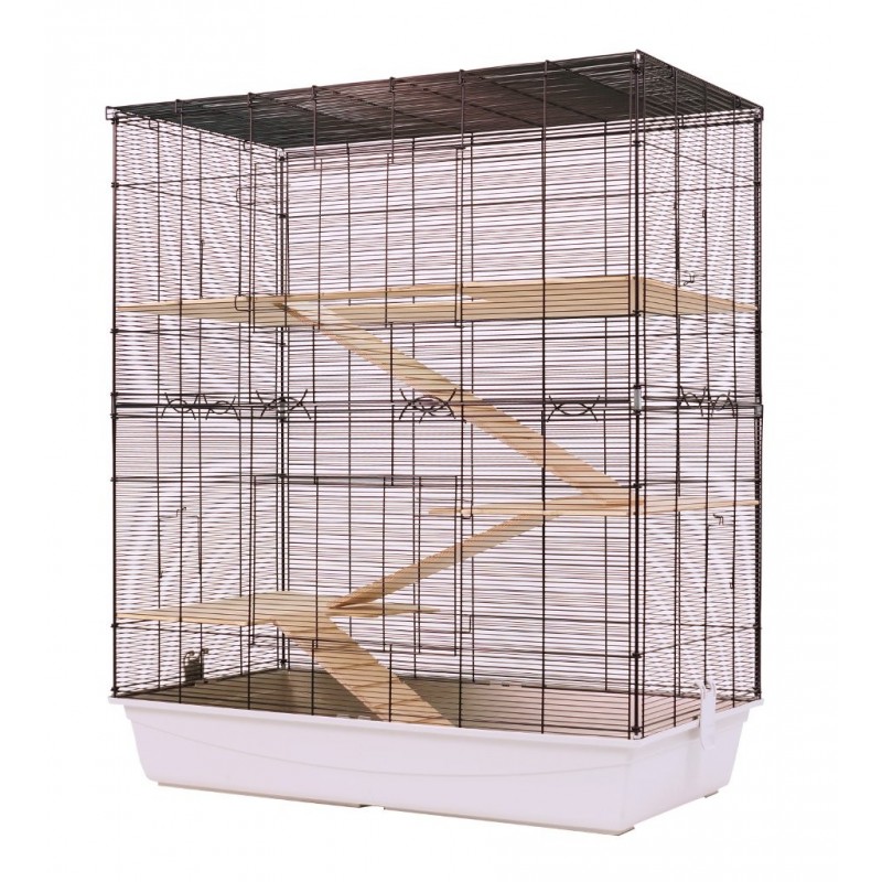 Duża, wysoka klatka dla gryzoni: szczurów, szynszyli, koszatniczek. Wykonana z wysokiej jakości drutu stalowego pokrytego farbą proszkową.