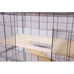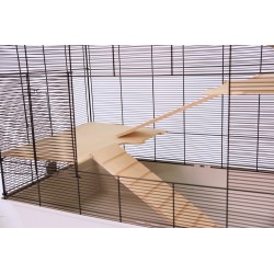 Klatka zapewnia pupilowi dużą przestrzeń, powiększoną dodatkowymi pięterkami.