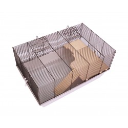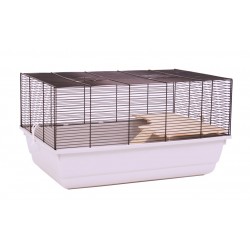 Klasyczna klatka dla chomików, szczurów, myszy. Wykonana jest z wysokiej jakości drutu stalowego, pokrytego farbą proszkową. Produkt posiada dwie pary drzwiczek, od góry klatki. Spód klatki ma wysokie boki, które minimalizują wysypywanie się poza klatkę trocin, ściółki, czy innego wypełnienia. Korpus (metalowa część) nie jest składany, co daje bardzo dużą stabilność. Gwarantujemy dobrą jakość wykonania, stabilność produktu, oraz odpowiednią grubość drutu potrzebna do wykonania klatki.